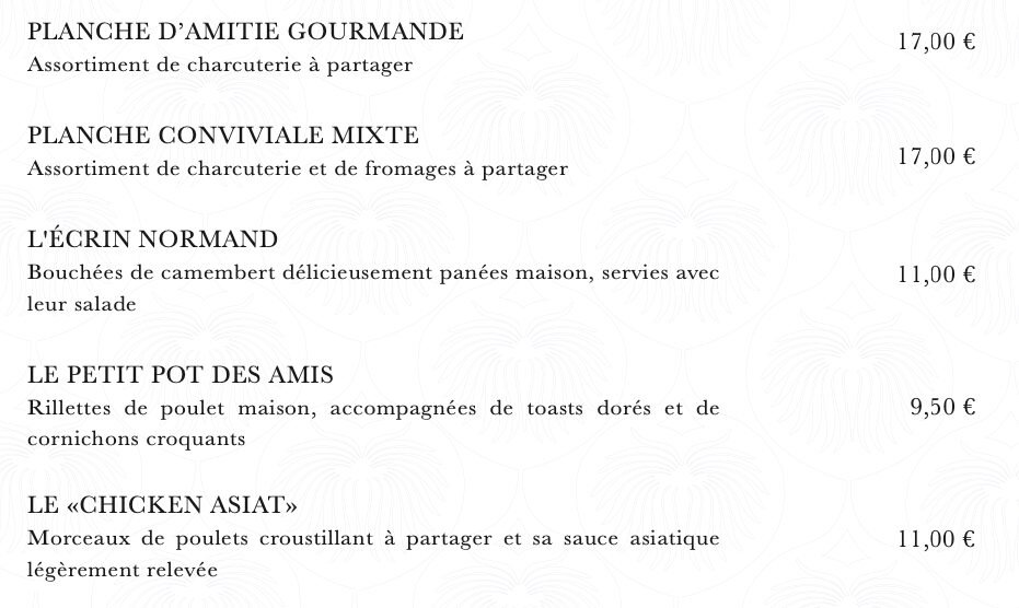 Pour compléter votre repas avec une touche de sophistication, découvrez notre sélection soigneusement élaborée de vins. Explorez notre carte des vins pour trouver l’accord parfait avec votre plat.