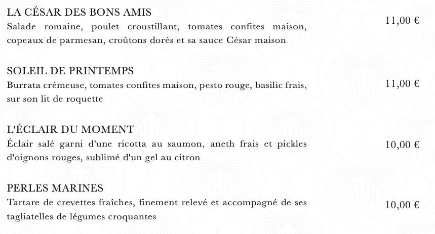 Explorez notre nouvelle carte du printemps, où chaque plat est préparé avec des ingrédients frais et de saison pour une expérience culinaire raffinée et pleine de saveurs.